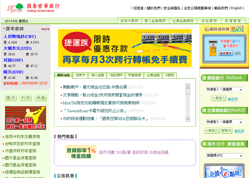 国泰世華銀行 owner 10年前 国泰世華銀行 Cathay United Bank 国泰銀行と世華聯合銀行が合併して誕生。 ほかの金融機関と同様、政府の金融改革により国泰金融控股を設立し、その子会社となる。 関連するとおもわれる記事 三井住友銀行台北支店 三菱東京UFJ銀行台北支店 京城銀行 台中銀行 華南銀行